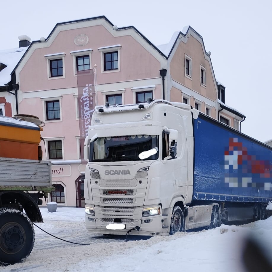 Um 10:38 Uhr wurden wir am 09.01.2026, zu einer LKW-Bergung alarmiert: Ein 40-Tonner blieb in einer Engstelle hängen. Dank der Unterstützung des Räumungsdienstes konnte der