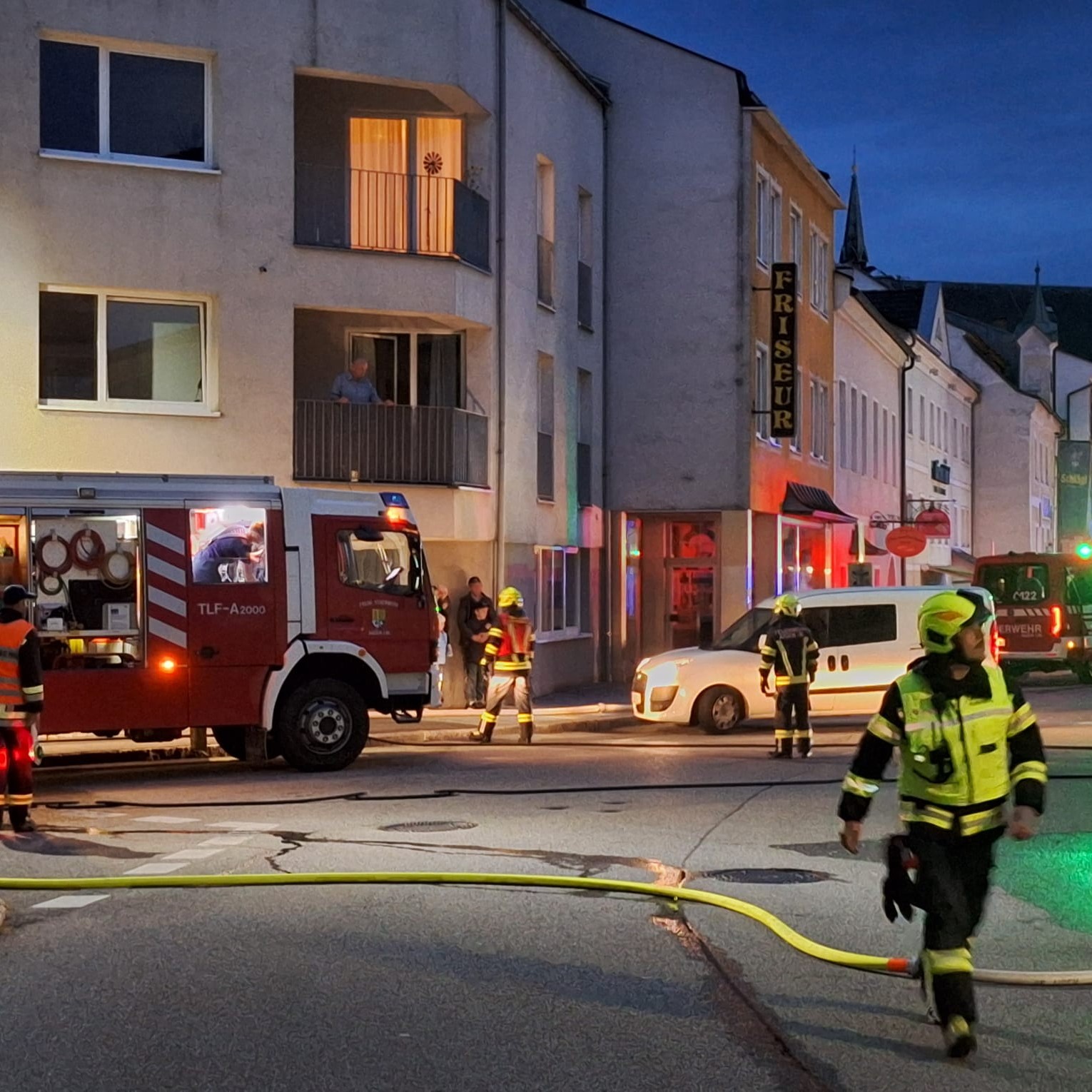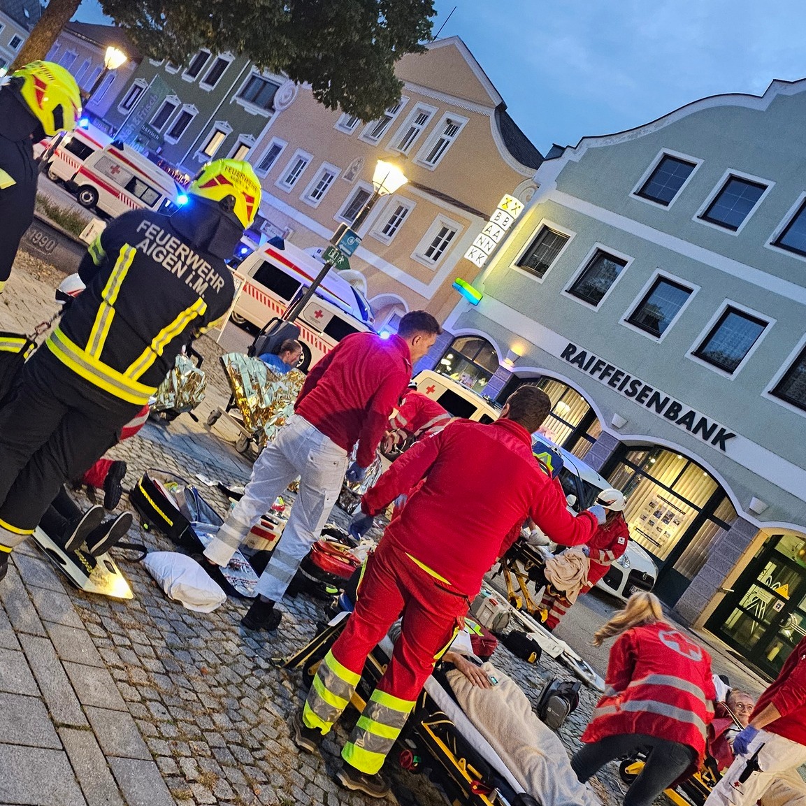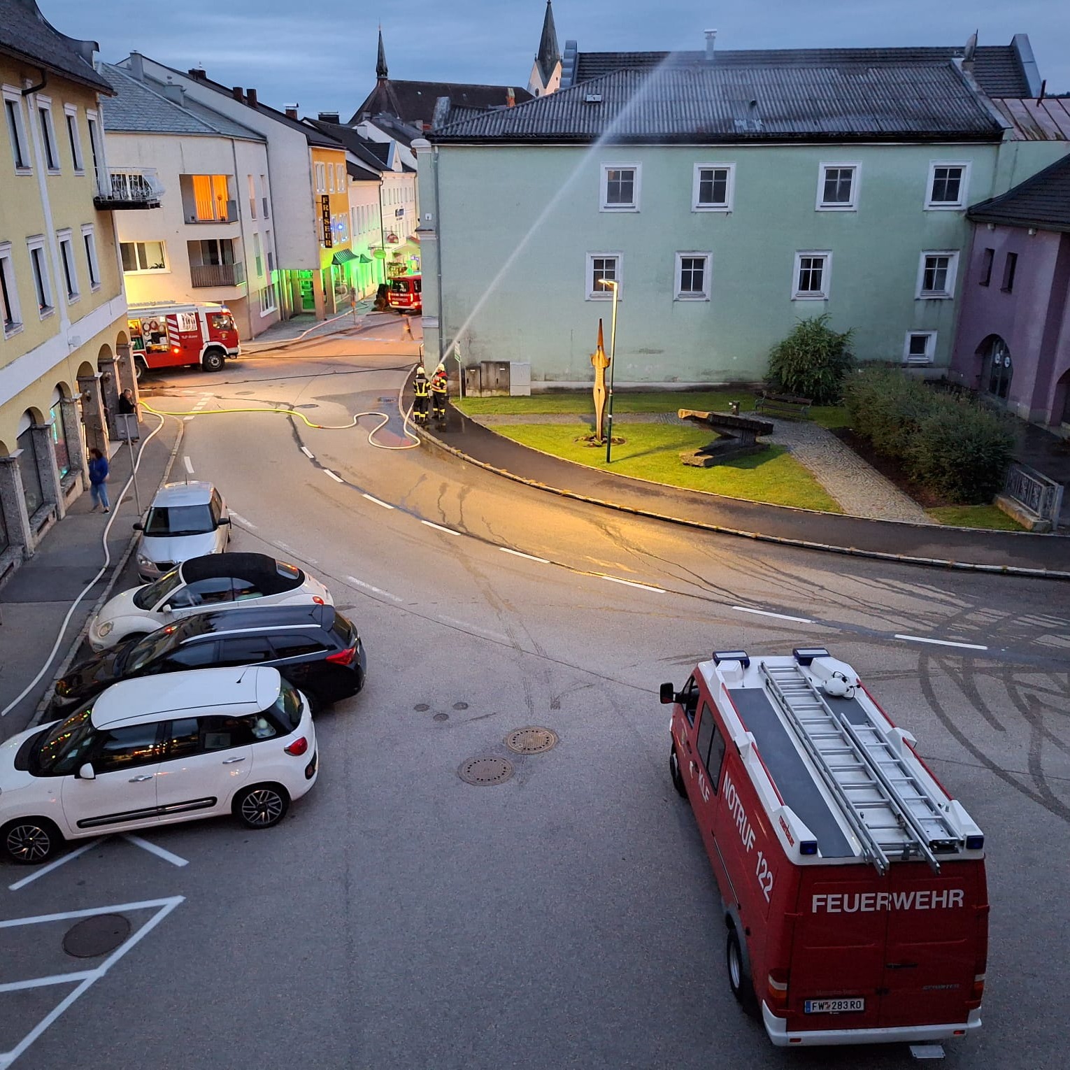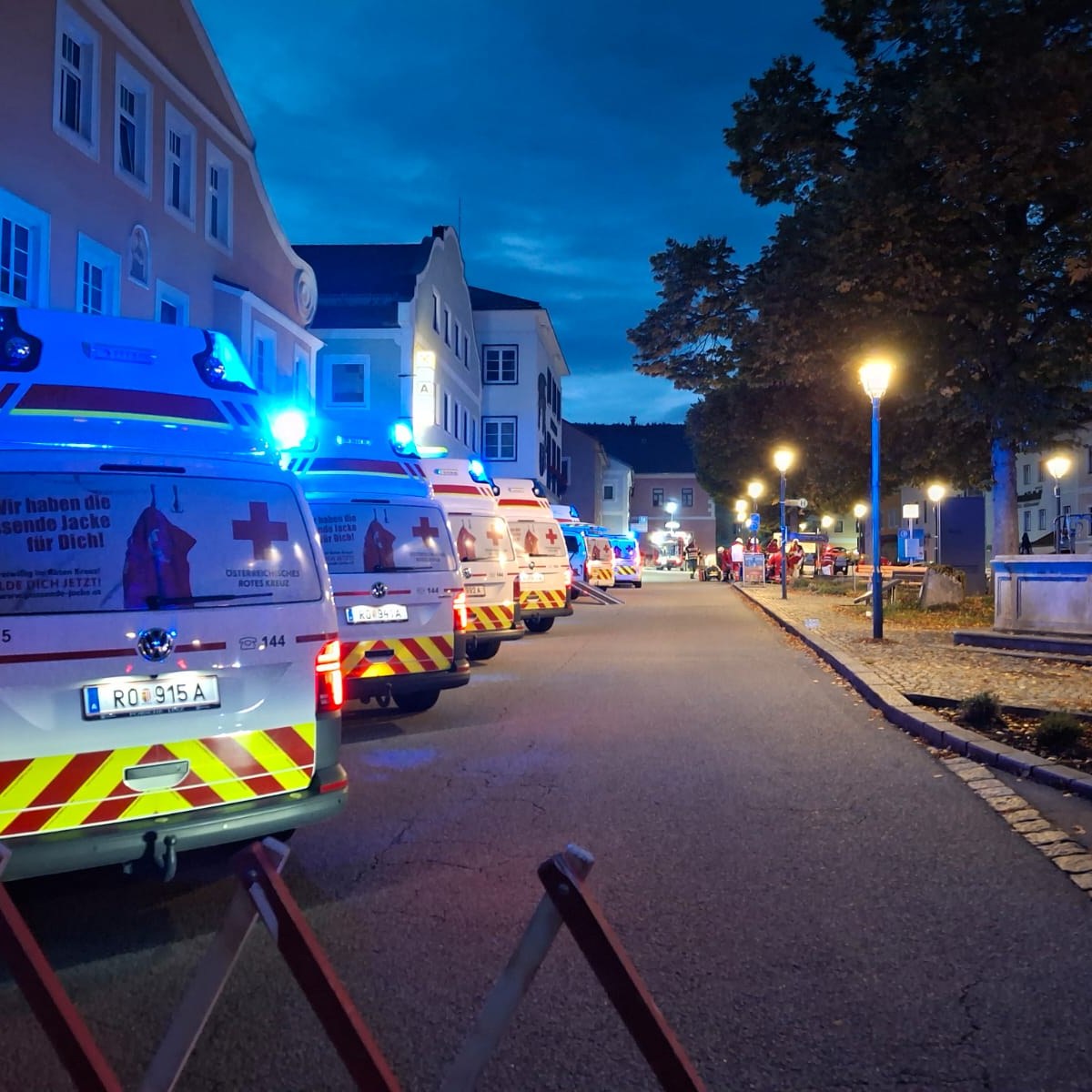 Dieses Szenario wurde gemeinsam mit dem Roten Kreuz ausgearbeitet, welches ebenfalls mit mehreren Fahrzeugen sowie Personalstärke diese Übung nutzten. Von Seiten der Feuerwehr wurden wir mannschaftsstark von der FF-Schlägl sowie der FF-Ödenkirchen unterstützt DANKE. Drei Atemschutztrupps retteten die Verletzten aus dem KIKAS-Saal, wo der Brand ausgebrochen ist. Im Anschluss wurden die Verletzten dem Roten Kreuz übergeben. Zeitgleich wurde die Brandbekämpfung von außen durchgeführt. Für diese Übung wurde der Großteil des Marktplatzes gesperrt. Die vielen Blaulichter lockten auch viele Zuschauer an. Durch die realistische Darbietung der Verletzten waren sich die Zuschauer nicht sicher, ob es sich doch nicht um einen Ernstfall handle.