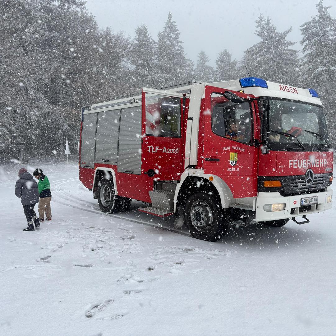 Die Kinder durften selbst zum Strahlrohr greifen und Helme sowie Atemschutz ausprobieren. Natürlich stand auch eine kleine Rundfahrt mit unseren Fahrzeugen auf dem Programm! Nur der Wintereinbruch hätte uns fast die Show gestohlen