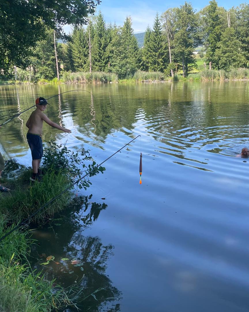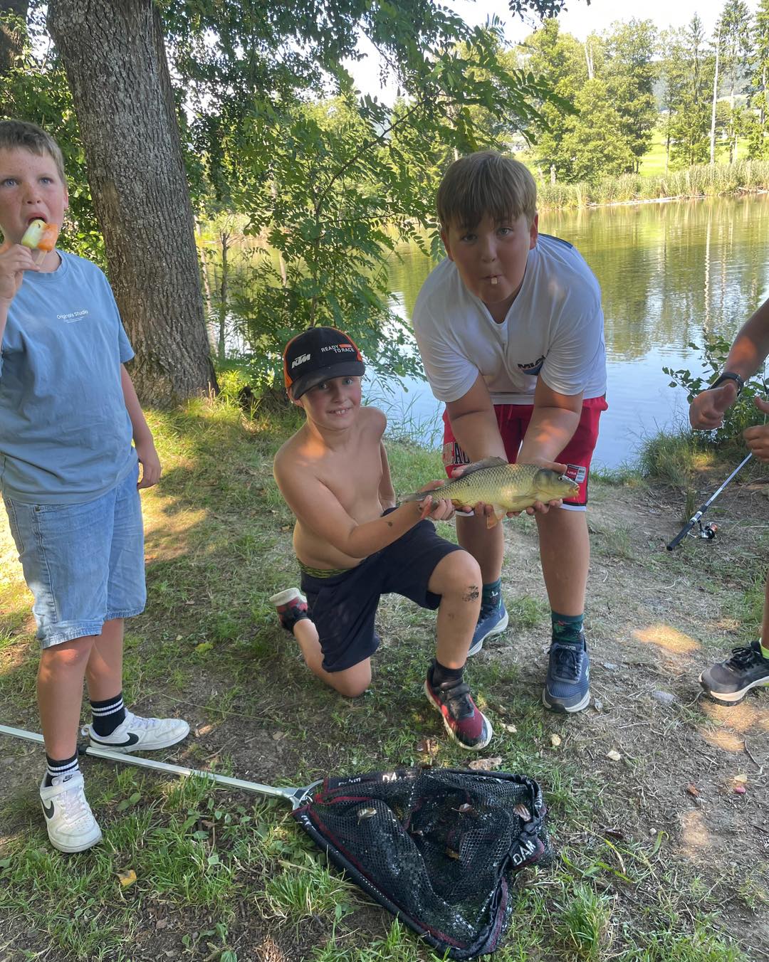 Bei Sonnenschein ging es für unsere Jugendlichen schon in den frühen Morgenstunden zum Ziegelteich. Dort erwartete sie nicht nur ein spannender Fishing Day, sondern auch ein köstliches Frühstück zur Stärkung. Mittags gab es natürlich Steckerlfische vom Fisch Hawara und Pizza und am Nachmittag sorgte ein erfrischendes Eis für die nötige Abkühlung.
