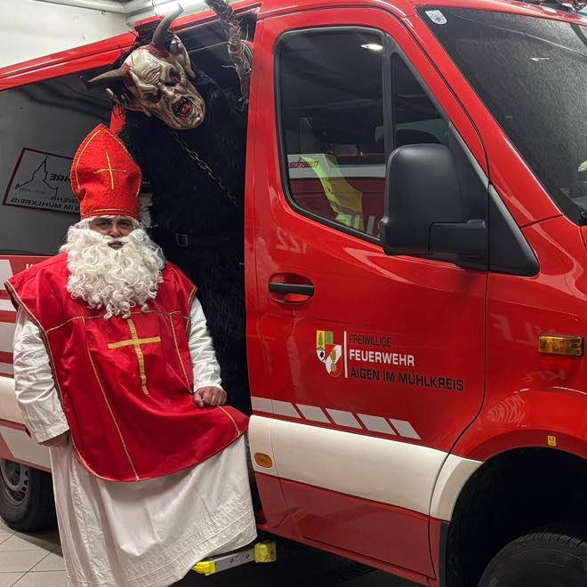 Auch unser Ehrenkommandant Kurt Schopper blieb nicht verschont und erhielt hohen Besuch von der himmlisch-finsteren Delegation.