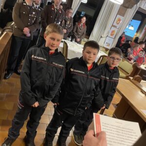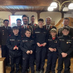 Ein neues Mitglied wurde in unsere Jugendgruppe aufgenommen. Den Jugendfeuerwehrmitgliedern wurden das Flori-Abzeichen sowie die Erprobungsabzeichen überreicht, außerdem wurden drei Jugendliche feierlich angelobt.